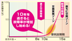 (一般に10年を過ぎると故障率が急に増えることが知られています)