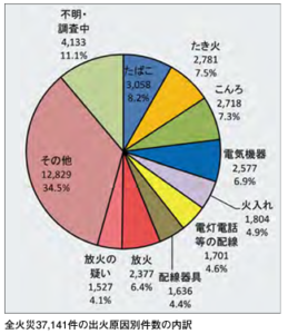 出火原因として最も多いのは「たばこ」次いで「たき火」。